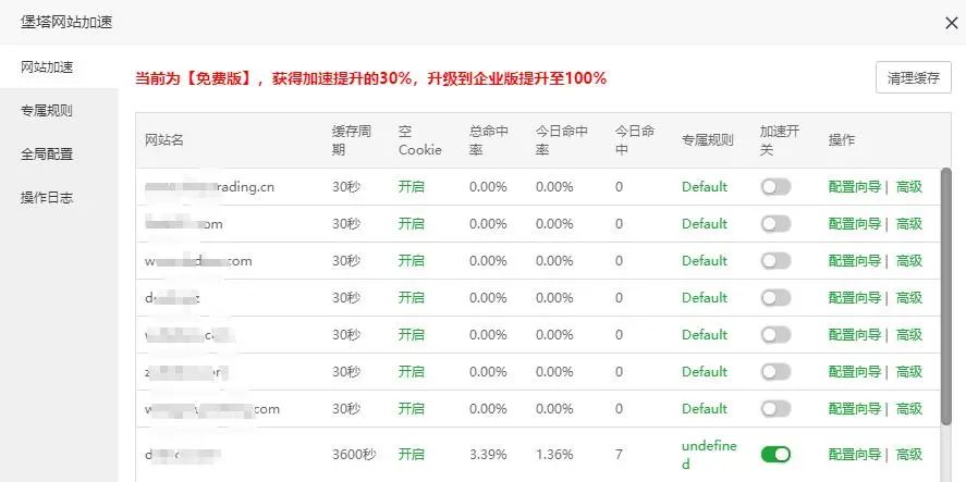 重构版,基于页面缓存的网站加速插件,安装或升级到此版本,将会卸载旧版本,如果是Apache需要先安装Memcached。若加速插件为网站并发性能提升10倍,则免费版上限为3 ~ 5倍,专业版上限为7 ~ 8.5倍,企业版的不限制。免费版和专业版的加速上限会因服务器情况,站点并发等影响,所以会在一定的范围内浮动,属正常情况。
