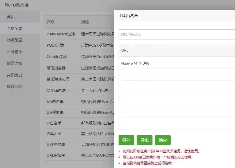 利用宝塔规则优先级:UA白名单> UA黑名单> URL关键词拦截> IP白名单 > IP黑名单 > URL白名单 > URL黑名单 > CC防御 > 禁止境外IP访问 >User-Agent > URI过滤 > URL参数 > Cookie > POST