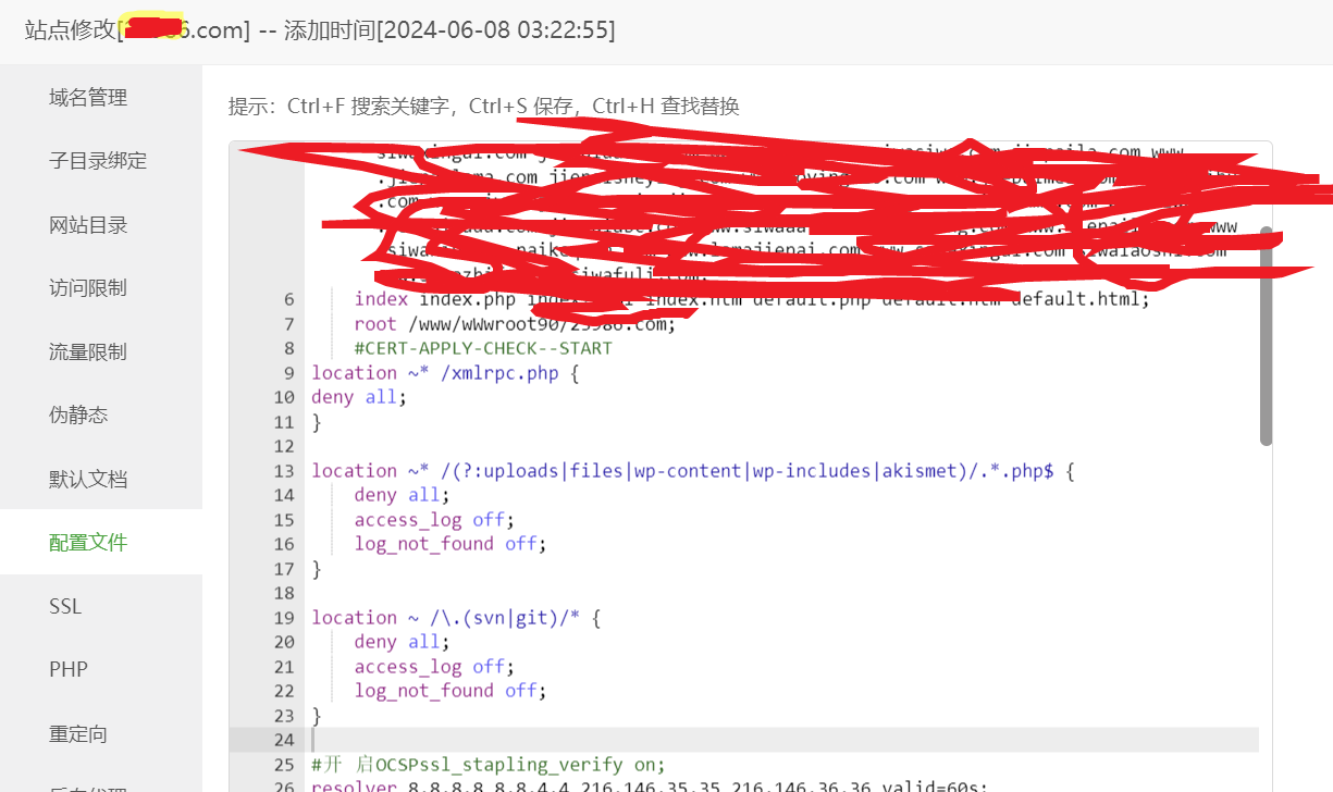 宝塔面板为例:网站–设置-配置文件